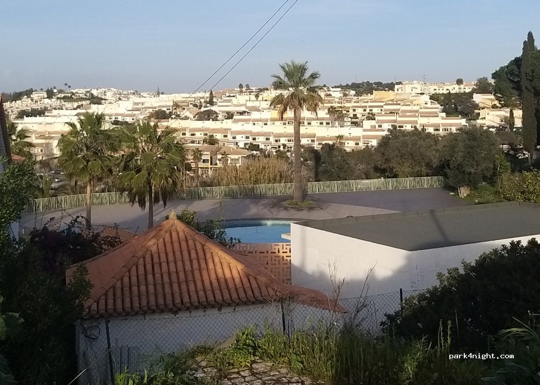 Parking. Quartier calme avec une très belle vue. Bon pour passer la nuit. Bon éclairage public. Supermarché, parc de loisirs et de sports et restaurants à 100 mètres. Arrêt de bus à 50 mètres pour visiter la vieille ville d'Albufeira. Nous avons séjourné plusieurs fois dans ce parc. Je recommande!