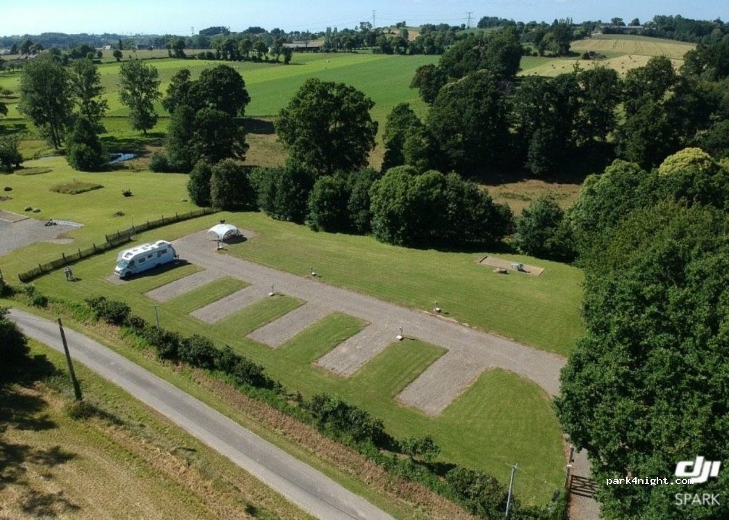 Superbe aire à la campagne des propriétaires à l’écoute et aux petits soins possibilité de recevoir le pain et les croissants directement à votre cc possibilité également de recevoir des repas chauds provenant de la petite auberge de Monthault tout est fait pour passer un moment agréable avec un terrain très bien équipé et entretenu avec un accès direct à une petite rivière