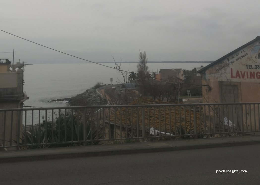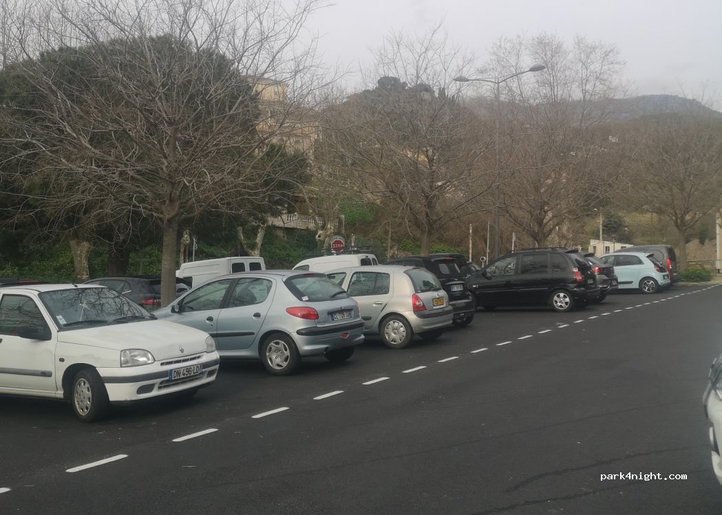 Great car park. Free and no barriers. A 15 minute walk to Bastia old town with views of the ocean. Felt safe and locals don’t seem to mind. Only stayed for the day but don’t see an issue with parking at night.