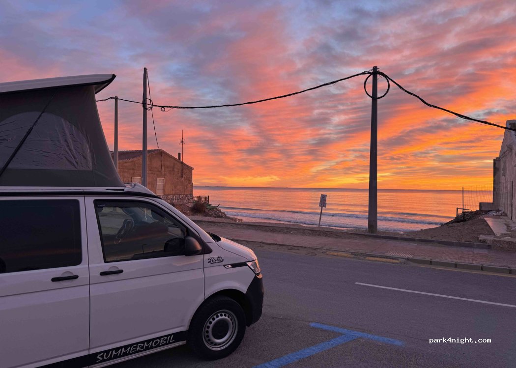 Wir haben hier 2 Nächte verbracht. Die Polizei fährt ab und zu vorbei, aber es gab keine Probleme. Wir standen hier kostenlos. Die Parkplätze sind hinter den Häusern, man steht daher etwas windgeschützt. Nur 1 Minute zum Strand. 10 Minuten zu Fuß entfernt gibt es öffentliche und saubere Toiletten mit Steckdosen. In der Stadt (ca. 20 Min zu Fuß) findet man viele Cafés und Restaurants.