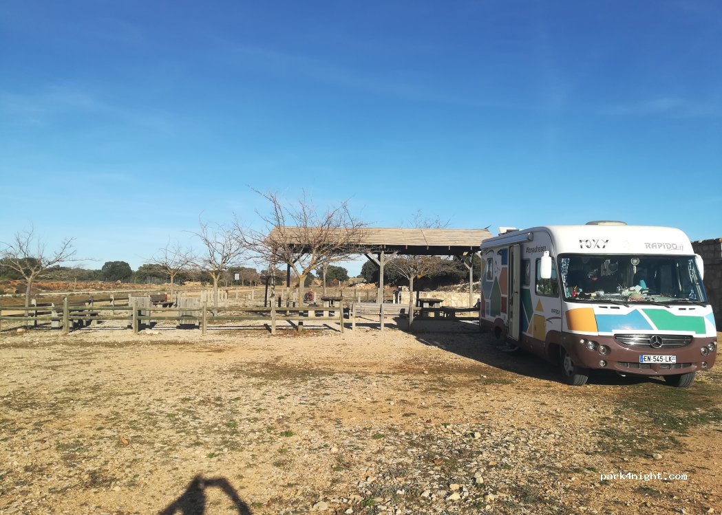 Sitio gratuito. Con servicio de agua y aguas negras, mesas y merendero. Da gusto que los ayuntamientos pongan estos sitios. En la parada de la ruta de don quijote