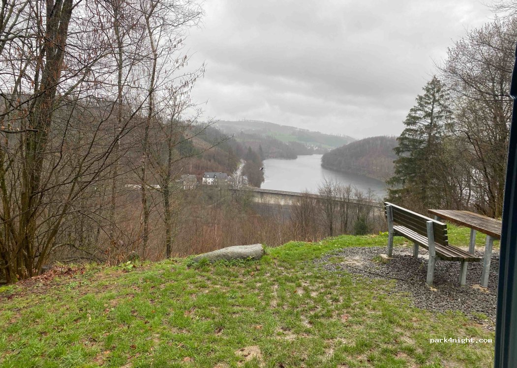 Very nice picnic area with a great view of the Aggertalsperre. Rather unsuitable for overnight stays, since one is quite inclined.