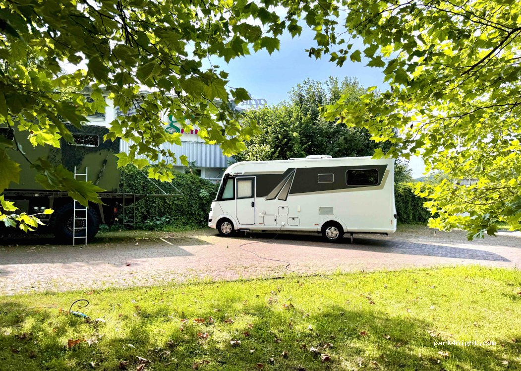 Unkomplizierte Logistik, freie Platzwahl, Strom + Wasser inklusive! Es ist eine Kreuzung in der Nähe, geräuschempfindliche Camper können ums Eck stehen, da ist es ruhiger. Fitnessstudio nebenan spielt manchmal Musik. in 50m REWE XXL, täglich 7-22h (ausser So) Baumarkt + Tankstelle vor Ort; 10min Fussweg zur historischen Altstadt, viele Restaurants! Telefonisch anmelden oder Email empfehlenswert!