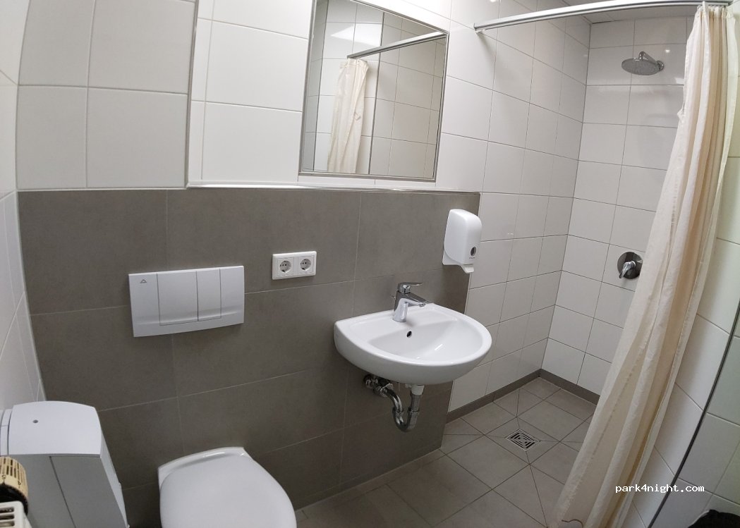 Excellent sanitary facilities! Showers for €3.50 in a spotlessly clean private room. Spacious, no time limit, hot water with enough pressure, lovely rain head, mirror, socket, shelves and hooks, everything there. Compliments, that was a really good experience.