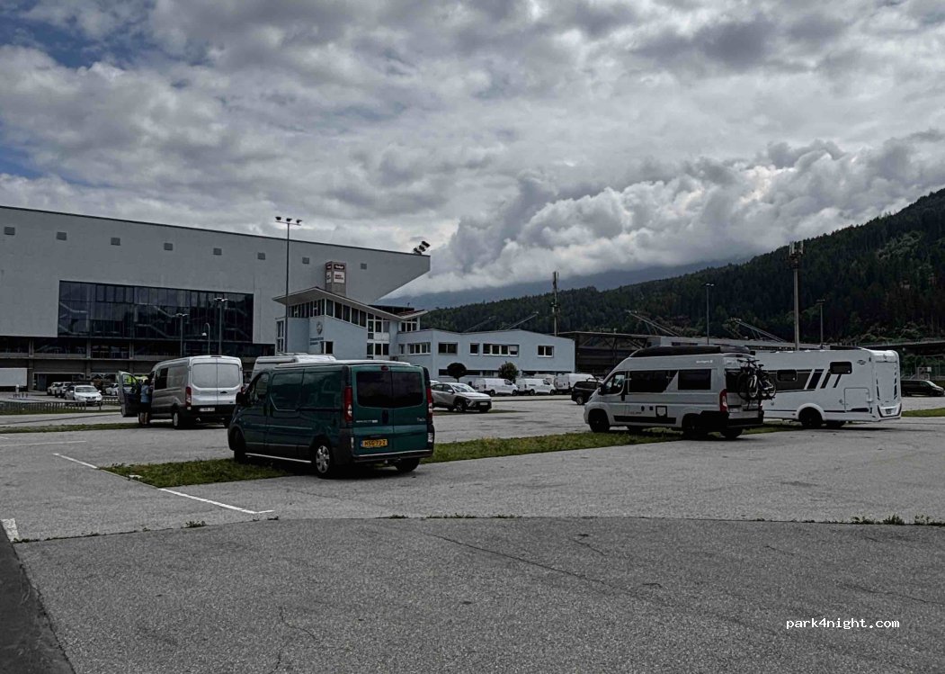 Parkplatz an der Olympiahalle Innsbruck. Habe hier ohne Probleme eine Nacht verbracht. Kein Service! Zentrum ist zu Fuß erreichbar. Beim Skateplatz auf der anderen Straßenseite gibt es öffentliche Toiletten (Öffnungszeiten unbekannt!)