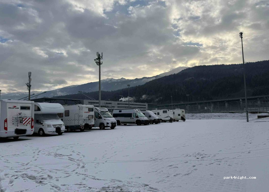 Waren einmal hier am Tag gestanden um Innsbruck zu besuchen. Es waren Abends auch noch zwei weitere Wohnmobile auf dem Platz. Wir sind allerdings dann doch wieder gefahren um wo anders zu schlafen. Sind dann am nächsten Tag Eislaufen gewesen und dann auch über Nacht hier ohne Probleme gestanden.