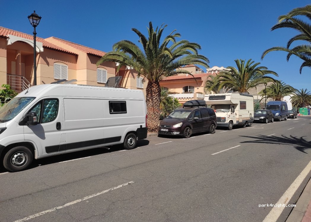 Parkplatz an der Straße hinter einer appartement Anlage. Sehr zentral gelegen Strand (Baby beach) in 1 min Fußweg und auch die Bar bodegita. Hier nachts aber sehr schön ruhig. Außerdem über einen kleinen Hügel ist man direkt beim Spar Supermarkt. perfekte Lage um das Valle Gran Rey zu besuchen