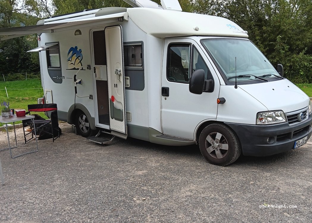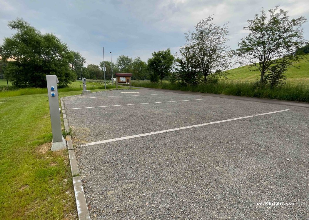 Sehr neuer, schöner gepflegter Stellplatz für 4 Fahrzeuge. Eine VE-Station ist auch vorhanden. Die Gebühr beträgt pro Nacht 5 Euro, falls der Platzwart nicht vor Ort sein sollte, kann der Betrag in einen Umschlag und in den Briefkasten geworfen werden, super Sache! Es war sehr ruhig, wir waren die einzigen dort und würden nochmal wiederkommen.