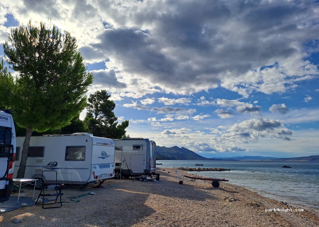 Krasny a tichy kemp pri mori. Moznost vyberu miesta na plazi alebo v tieni stromov. Velke kamene na plazi nie su uplne idealne pre deti. Prijemny a napomocny personal. Kazdy den prichadza pekaren a kazdy druhy den ovocie-zelenina. Obchod/restauracia 2 km. Vstup Paklenica 10 km.
