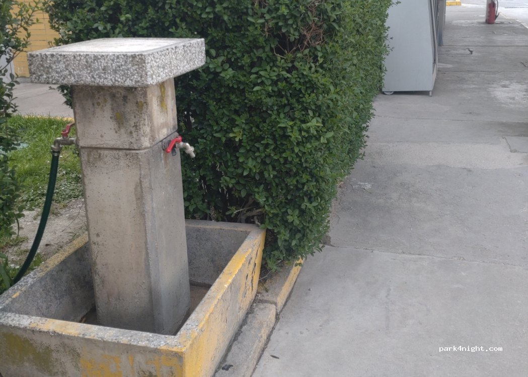 The fuel station is under construction. No access to the water tap. There is one three minutes down the road at another fuel station
