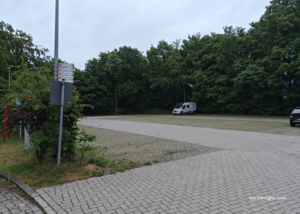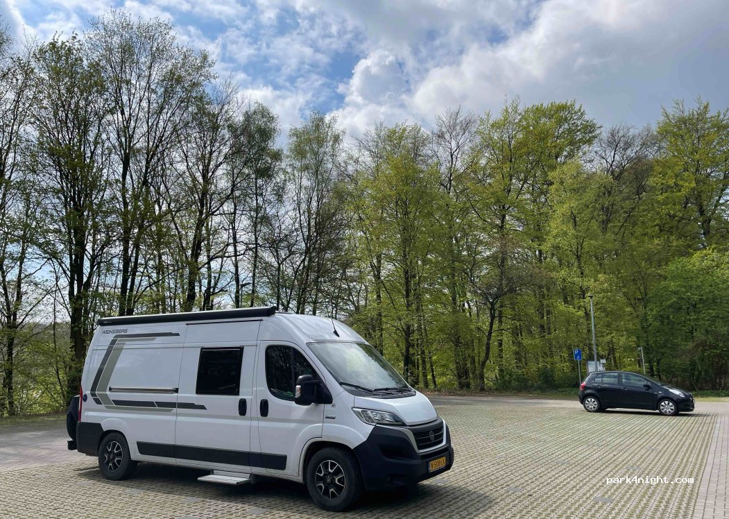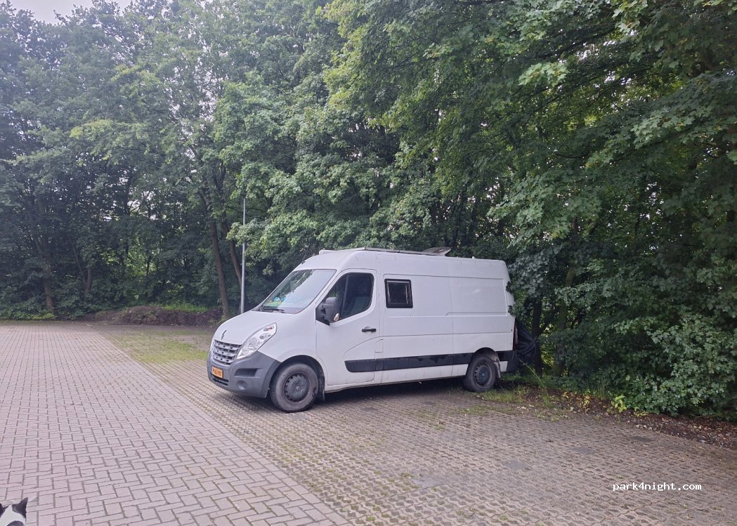 Ruime parking naast mooi wandelbos. Op achtergrond hoor je zeer licht het verkeer op de weg. Op weekdagen in de ochtend, af en aan gerij op de parking van ouders die hun kinderen naar opvang brengen. Prima overnachtingsplek op doorreis.