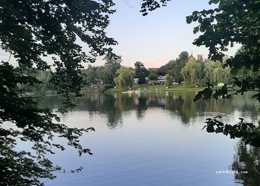 Bezplatné parkoviště v klidné části přímo na břehu rybníka do kterého je zde i pohodlný vstup pro ranní koupel. Chcete-li ráno stín, zaparkujte vpravo pod stromy.