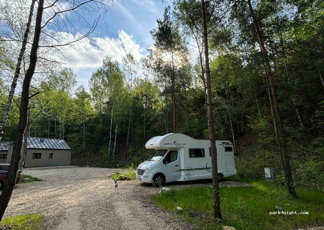 Witam. Przyjechaliśmy na 3 dni na weekend. Bardzo atrakcyjne miejsce. Jest tu kilka stanowisk na kampera lub przyczepę, przyłącza wody i prądu tuż przy stanowiskach. Bardzo czyste łazienki z prysznicem oraz ciepłą wodą. Przy samym parkingu znajduje się bardzo dobra restauracja. Dla dzieci bardzo obszerny park zabaw. Polecam. Pozdrawiam