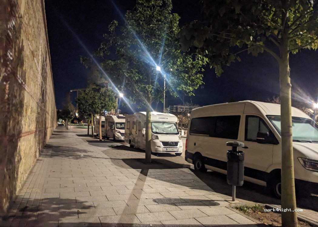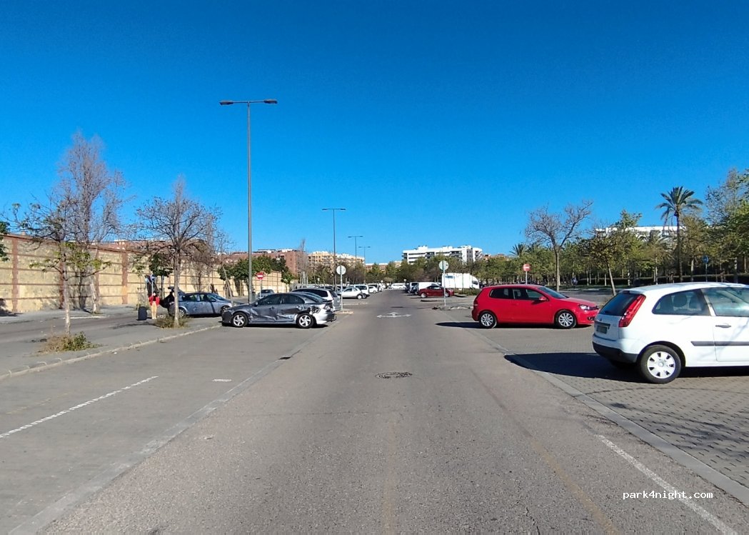 Parking al lado del cementerio muy grande pero sin servicios. A media hora caminando de la ciudad de las ciencias y del centro de la ciudad. En general tranquilo por la noche aunque hay una carretera al lado por la que pasan coches durante toda la noche.