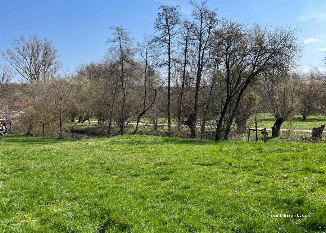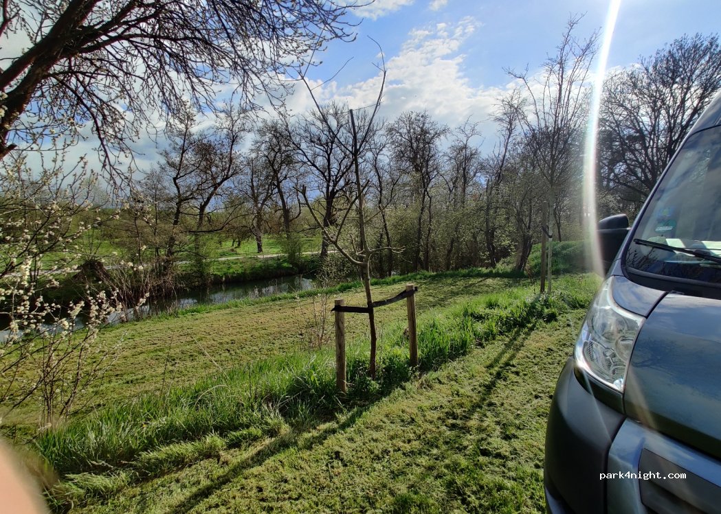 Netter Platz, kleiner Biergarten nebendran mit frischem Fisch und Bratwurst. 15€ per Camper. Die Brücke am Dorfeingang ist auf 12t beschränkt. (An der Bundesstraße ist es fälschlicherweise als <7,5t ausgeschildert) Somit müssen schwerere Mobile ggf aus Richtung Norden anreisen.