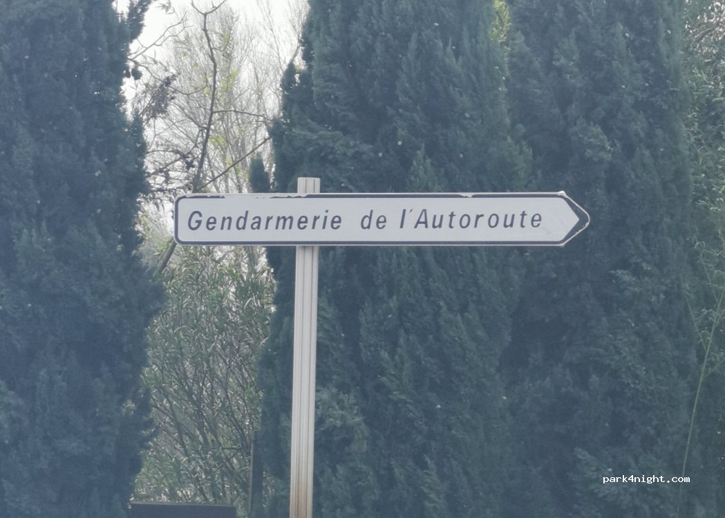 Parking near the gendarmerie on the autoroute. safe place recommended by the gendarmerie itself. near the motorway exit and therefore slightly noisy