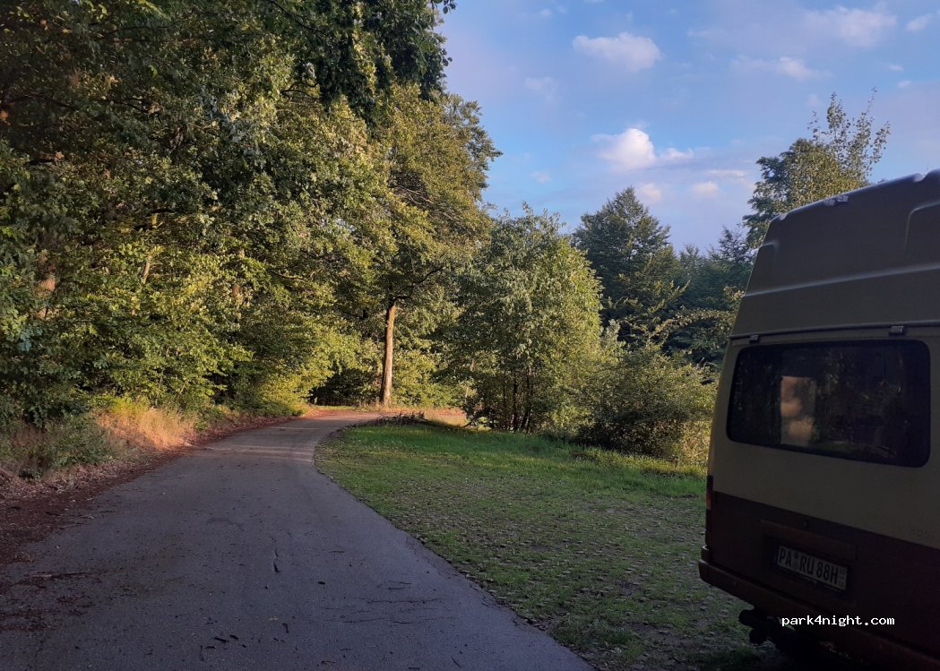 Sehr ruhiger Parkplatz direkt am Waldrand. Keine Mülleimer oder Toiletten vorhanden. Bitte sauber halten! Auf einem Morgenspaziergang ein Reh durch den Wald laufen sehen. Spaziergänger am Morgen, nett gegrüßt.