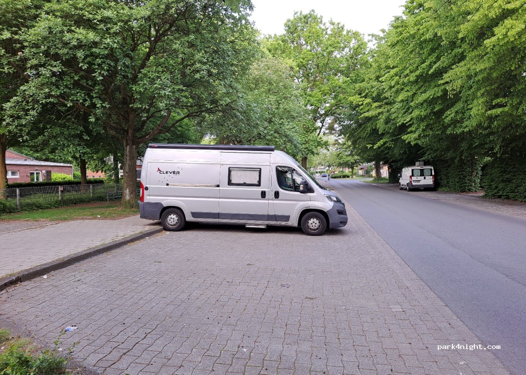relativ ruhiger Platz. Tagsüber recht viel Verkehr aber abends schon ruhig. Ich konnte da mit meinem WoMo mit 6,20m gut stehen. In der Nähe ist ein Hallenbad oder Sportplatz ( selber nicht genutzt) Für eine Nacht als Selbstversorger also ok.