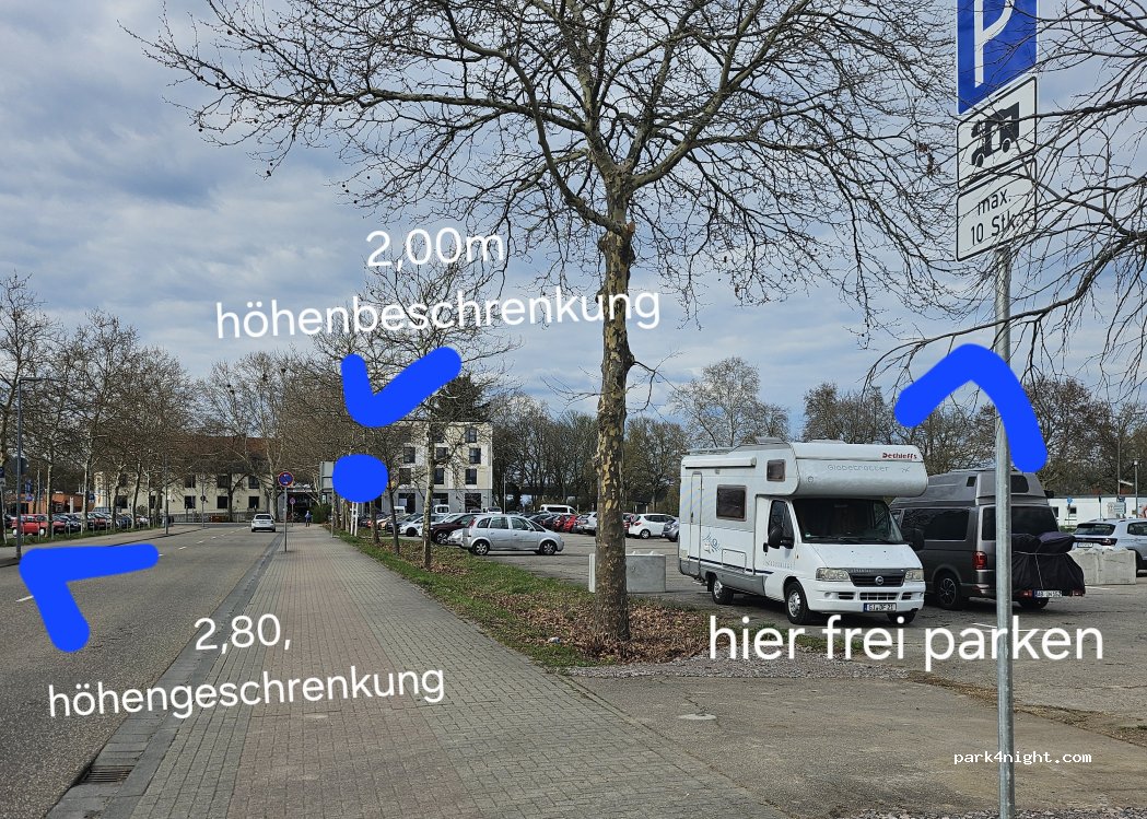 Der Platz ist jetzt gegenüber Höhenbegrenzung 2,8m! Und es gibt deutlich mehr Plätze! Ideal für ein Besuch in Speyer!