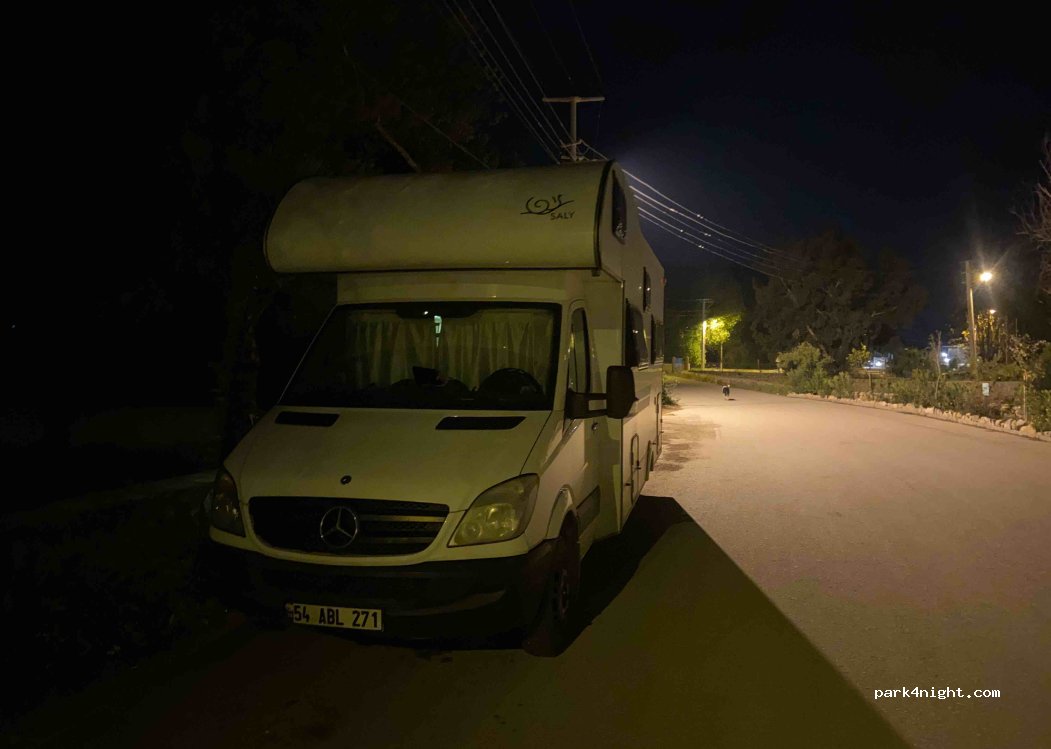 Quiet parking for 3-4 long motorhomes on the side of the road. No houses near the place. Only sounds are distant dogs barking and not loud muezzin chanting. Traffic is not hard. Easy access for long and high vehicle.