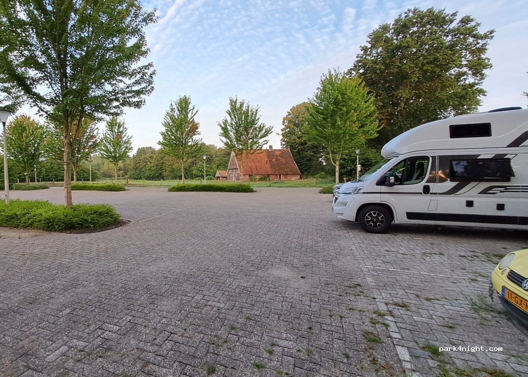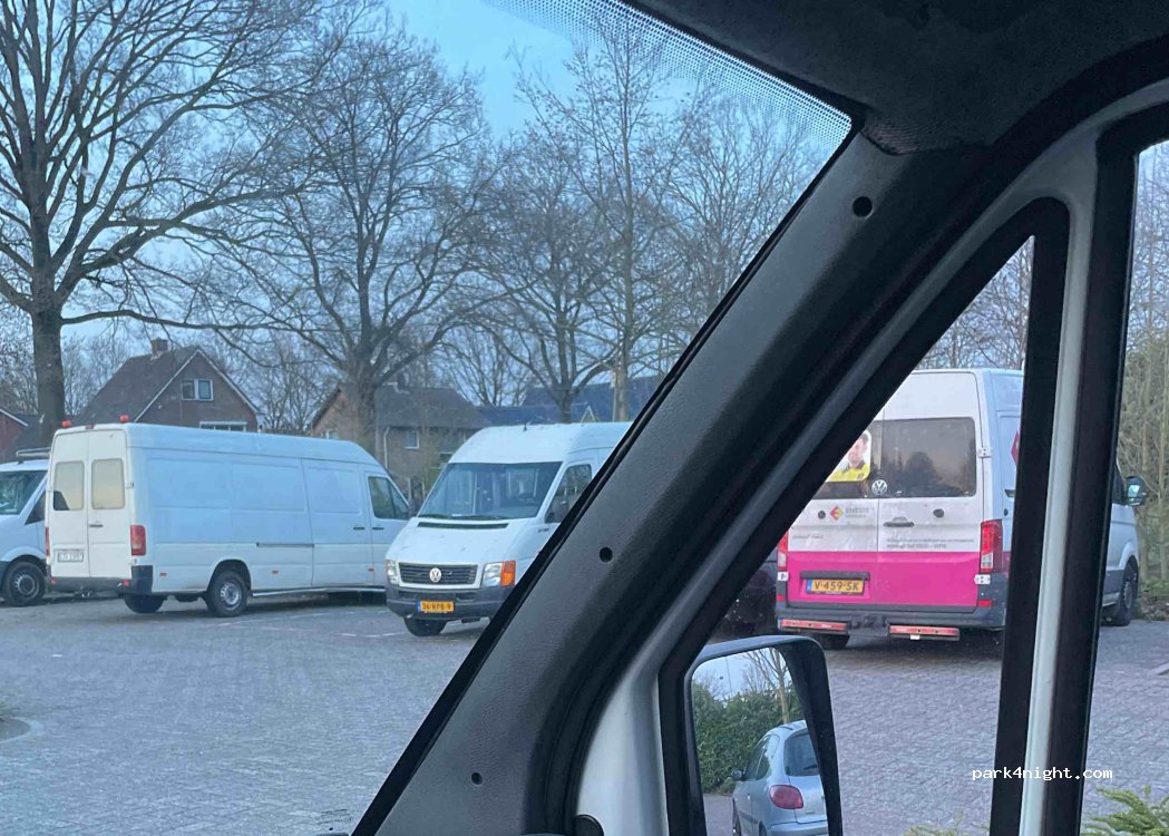 Hier gestaan op een donderdag, in de avond de hele parkeerplaats vol met auto’s van mensen gaan tennissen of wat dan ook. De laatsten gingen pas om 2 uur ‘s nachts naar huis. Zéér luidruchtig, dus als ‘s avonds de parkeerplaats vol loopt. Wegwezen. Overdag rustig.