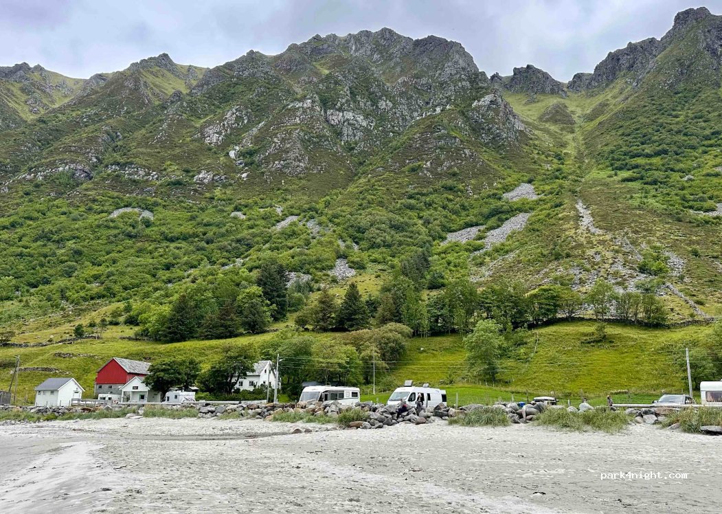 Camping en bord de mer. Prairie pour tentes, voitures et tout type de mobil-homes. En partie avec colonnes de puissance. INSCRIVEZ-VOUS D'ABORD AU KIOSQUE OU À LA MAISON EN FACE, PUIS RENDEZ-VOUS SUR LE SITE. Très bonne installation sanitaire toujours propre. La douche coûte en supplément, l'eau potable n'est pas directement accessible en camping-car (bidon !). Tous les autres endroits à Hoddevik ont un panneau d’interdiction de stationnement.
