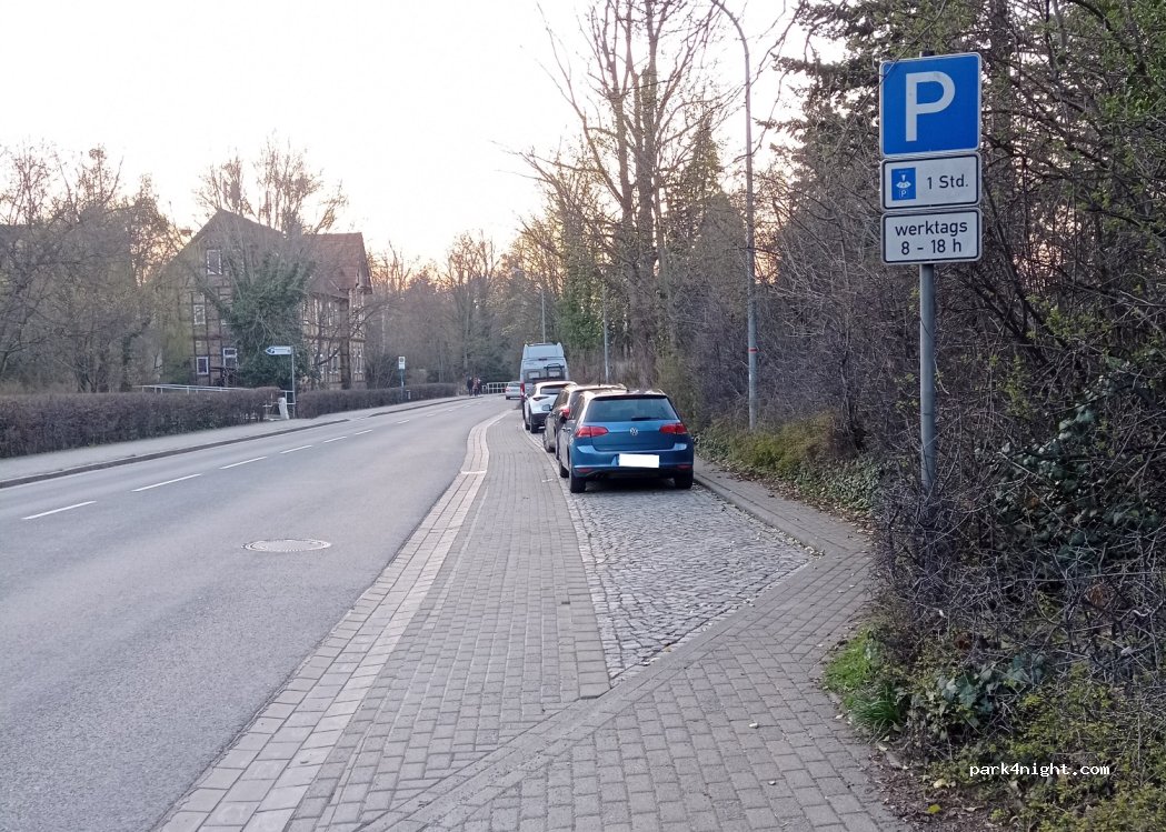 An Werktagen von 8 bis 18 Uhr mit Parkscheibe 1 Stunde kostenfrei parken.