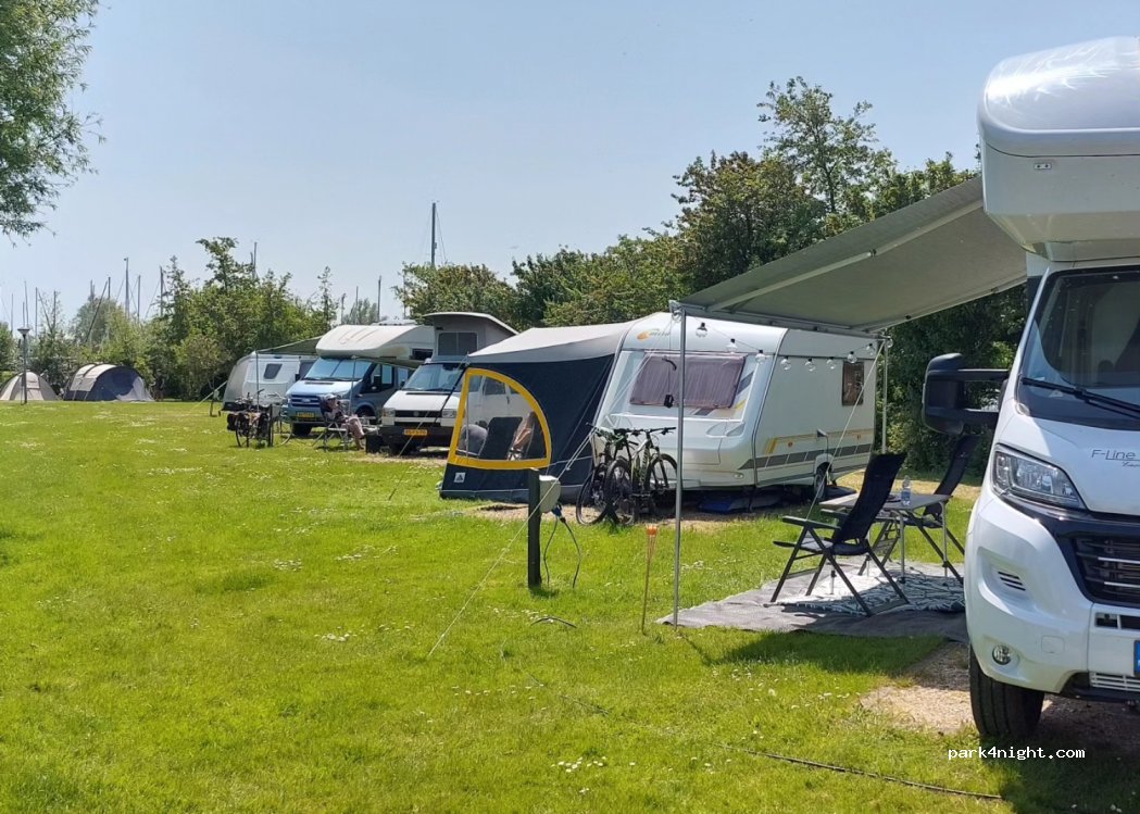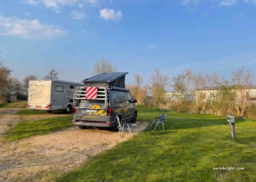 Camperplaats is niet direckt aan het water , de camping wel .de douches en wc zijn te lopen maar zou een fiets of step meenemen