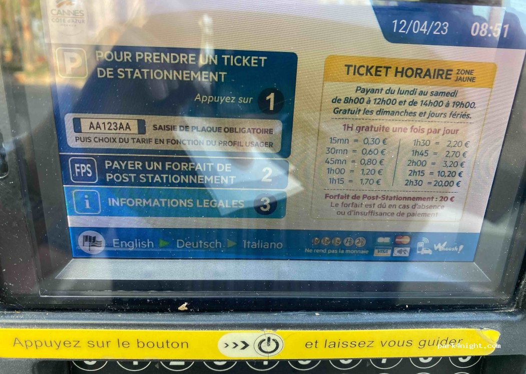 Parking nice located but unfortunately very noisy. Youth meeting in cars and listening to loud music until 2 am and from 7 am here. The police came once but didn't bother us. Public toilets in the park open 9.00-19.30. The next ones (open all night) are approx. 150 m from the parking lot at the Place Franklin Roosevelt bend. Despite the height barriers (1.90), our car 2.10 m passed just below.