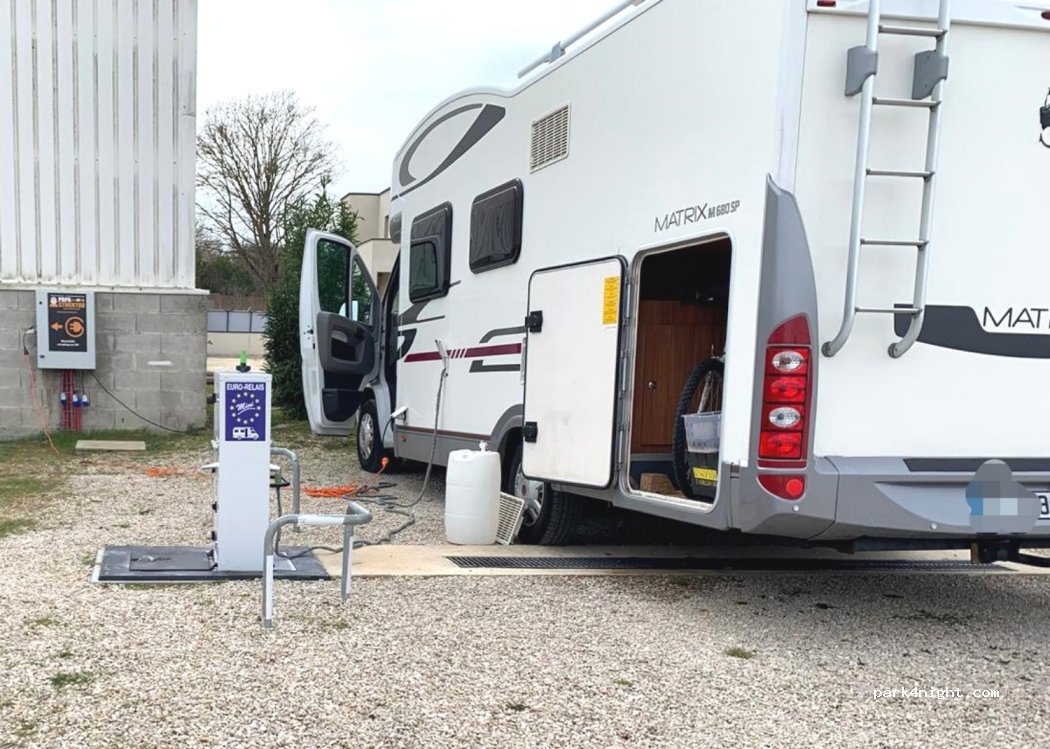 Très belle aire de repos, très calme et parfaitement sécurisée. Chose rare, tous les services sont illimités pour 24 heures et inclus dans le prix. Paiement et accès totalement automatisé via un site web. Propriétaire disponible et sympathique. Allez y les yeux fermés et n'oubliez pas de boire une petite coupette de Champagne !