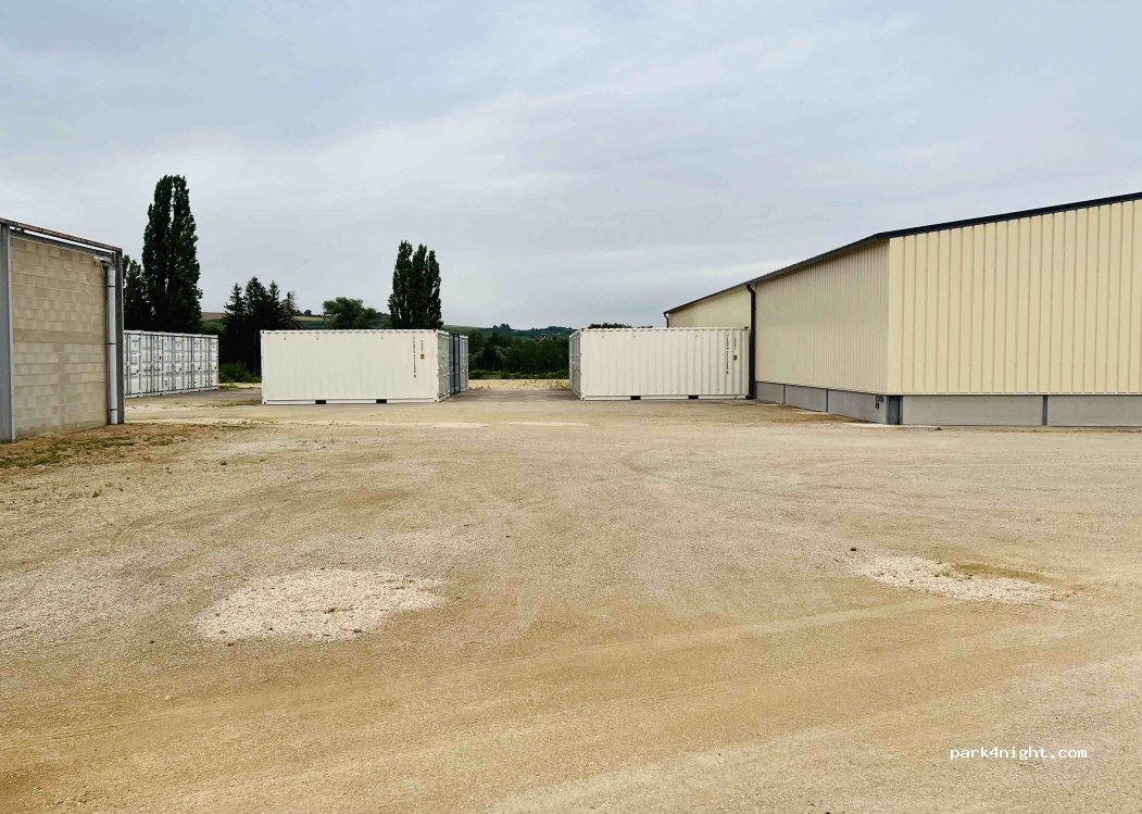 A site for the practical types rather than the romantics. 3 good size CC parking spaces in a large secure storage yard. Electricity, water, grey & black waste all new good quality equipment. Pitches are nearly flat, dry & clean. Picnic table & bins LeClerc a 3 min walk has good toilets, fuel, gas & laundry. Local Train is a 15 min walk or 4 min drive. Good free & large parking spaces at station