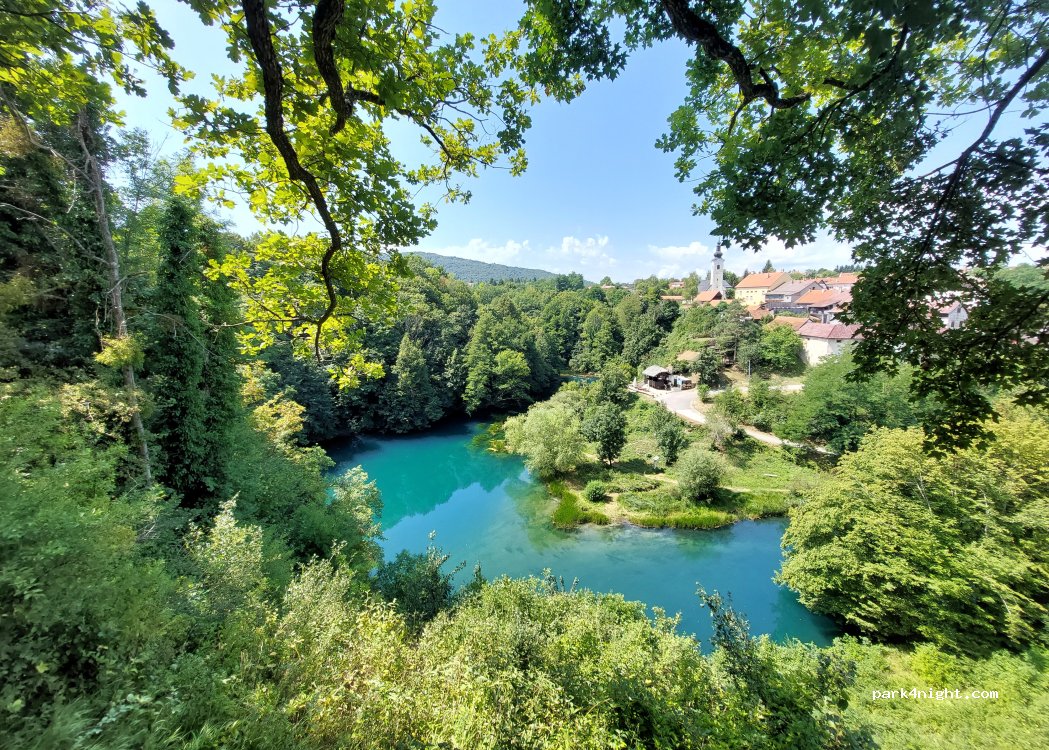 De parkeerplek is op zich niet bijzonder (beetje meer groen zou leuk zijn). Maar faciliteiten zijn netjes (in café/bowling aan overkant). Je hebt een mooi zicht, en je loopt via wandelpad naar beneden wel heerlijk naar rivier en dan verder naar dorp slunj zelf ofwel naar Rastoke. Heel leuk dorp trouwens, met geweldige zwemplek aan brug! Weg langs camperplek is rustig.