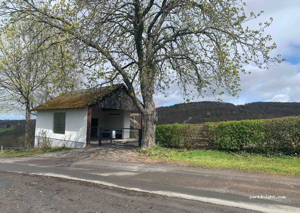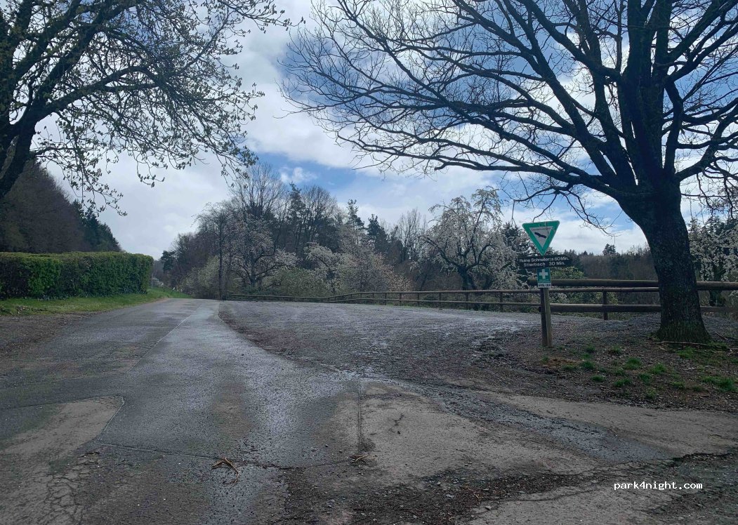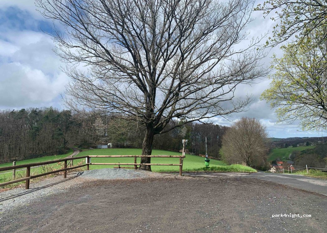 Parking opposite a cemetery. Ideal as a starting point for hikes and bike tours. Some traffic from cemetery visitors and walkers during the day.