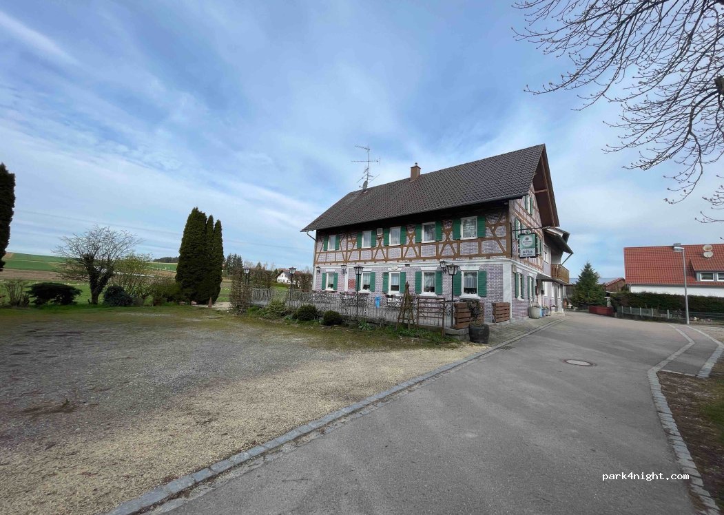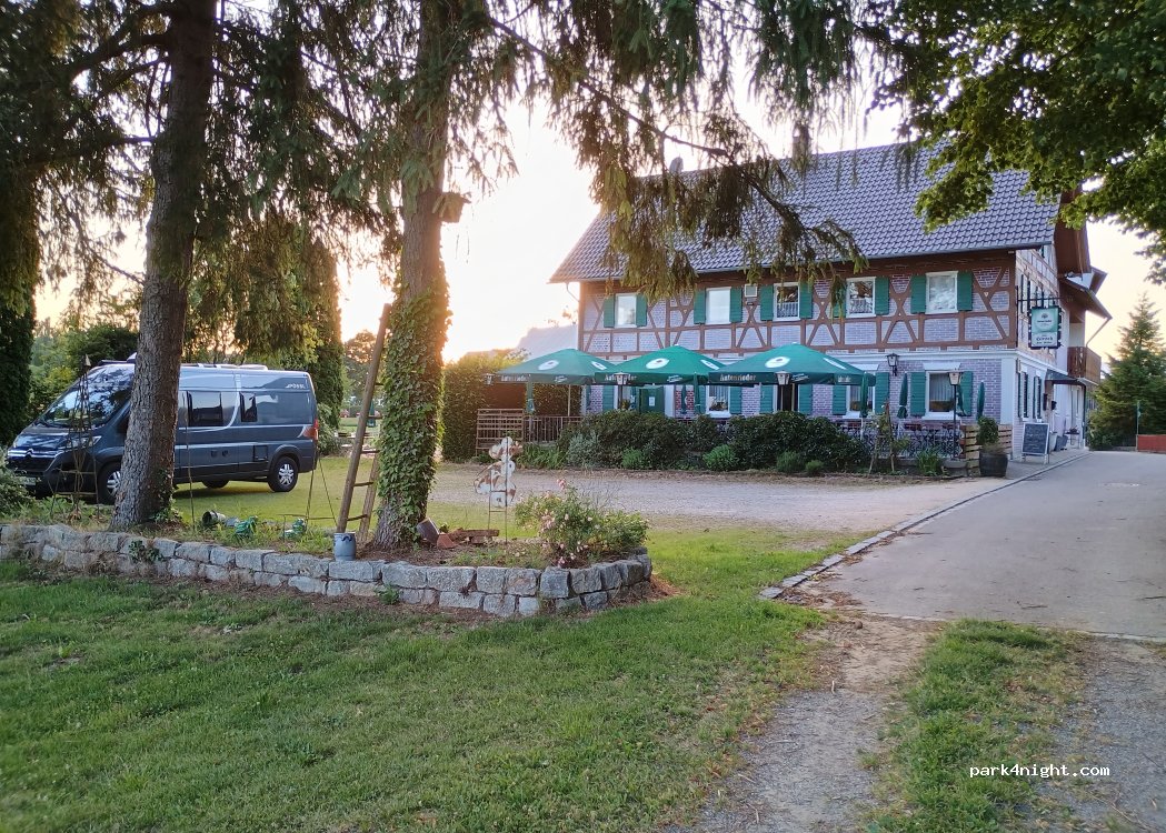 Also Zwischenstopp von Süd nach Nord. 12 KM von der A 8 gelegen. Kostenfreier ÜN Platz bei Besuch des Gasthofes HIRSCH. Lecker Essen gut, ausreichend und preiswert. Netter Gastwirt Der Gasthof liegt am Ortsrand direkt am Wald. Hatte eine ruhige Nacht.