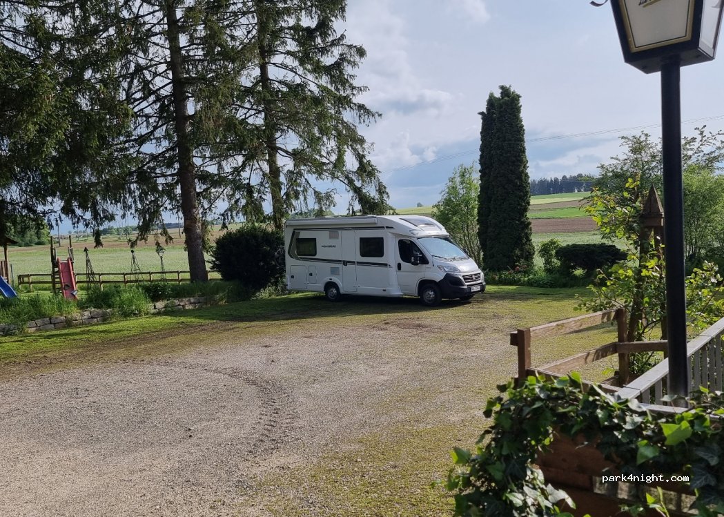 Ein wirklich schöner Stellplatz. Auch spontan (Fronleichnam =voller Biergarten) absolut unkompliziert. Bitte dennoch vorher im Gasthof auf Verfügbarkeit anfragen. Zwar keine Leistung wie Strom und Wasser aber dafür leckeres gemütliches Ambiente mit gutem Essen und Getränke Bitte keine Dauercamper - gedacht als Zwischenstopp zur Erholung der Fahrtüchtigkeit für eine Nacht. Danke