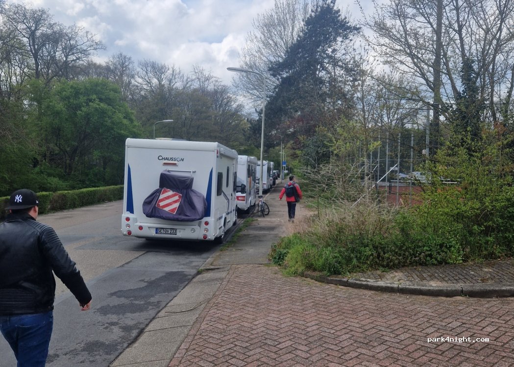 Parking al carrer al costat del club de tennis. A poca distància hi ha les parades del tramvia (línies 1 i 9) que et porten tant a Scheveningen com al centre de La Haia. Vam aparcar en dissabte, que és gratis tot el dia, però recomano arribar aviat: nosaltres vam aparcar abans de les 9h i ja vam veure que arribaven cotxes poc després. Quan vam marxar, als volts de les 16h, hi havien diverses AC.