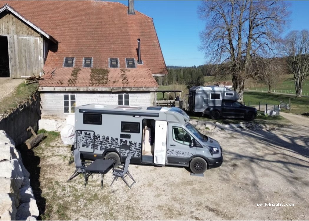 Propriétaires disponibles. Electricité et eau compris dans le prix. Evacuation eaux grises possible mais plus compliqué pour un grand camping car. Tranquilité. Lieu de départ de randos à pied et à vélo.