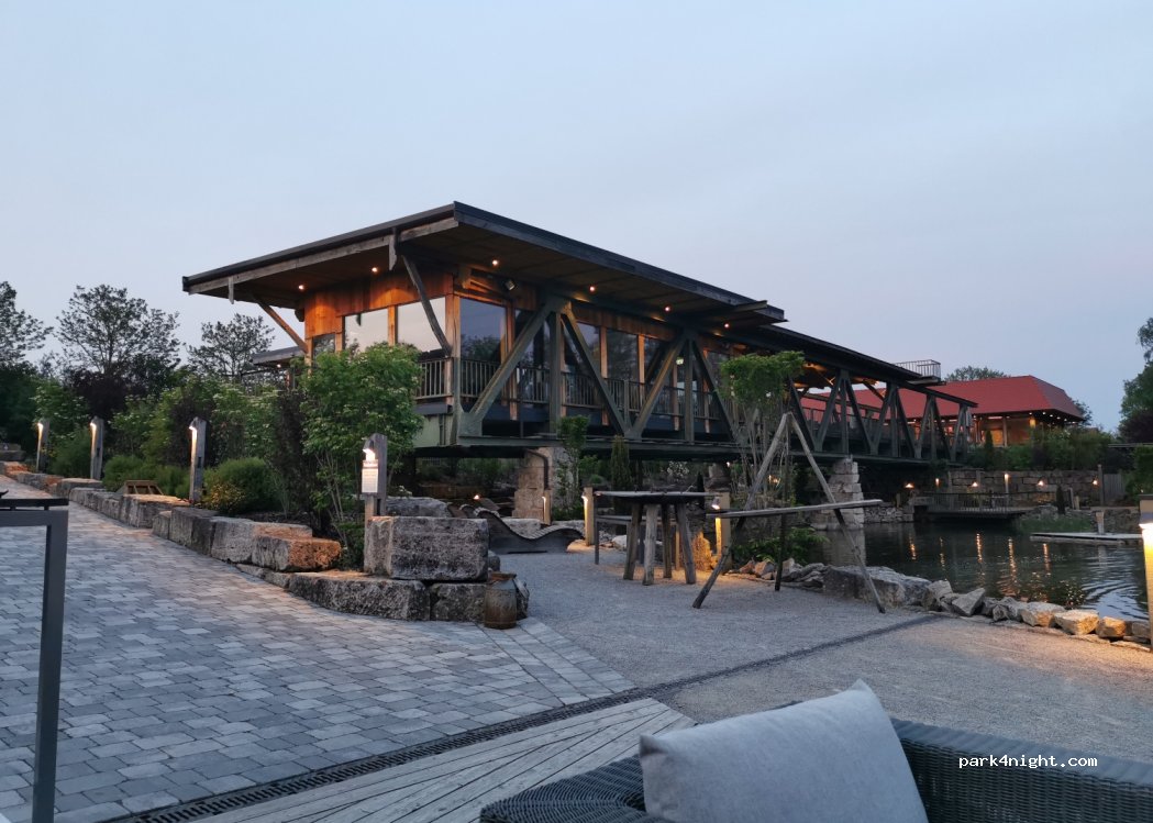 The Brückenbaron is a great event location with a year-round restaurant Brückenbaron in the Ochsenfurter Gau. There is great regional and seasonal Franconian cuisine with great and delicious wines. The hiking trail and hiking through the region is also beautiful. For the children there is a great playground with a super nice area, and there are also plenty of opportunities to sit down on the site. You can go cycling and hiking. We really liked it and we would love to come back. It's worth a visit.