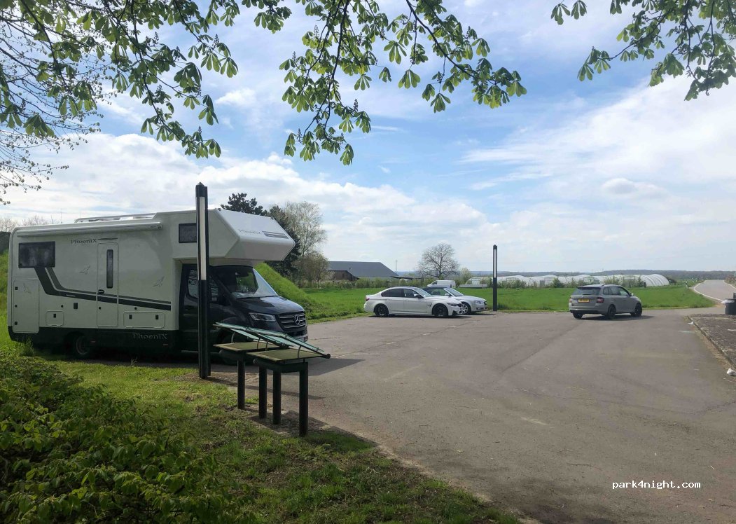 One of the few parking spaces that is not limited to less than 3.5t. Quiet at night, in the morning during the week the night ends at 06:30. Then a wave of rush-hour traffic collapses onto the two streets. The smaller road without a central reservation is still much busier than the larger road