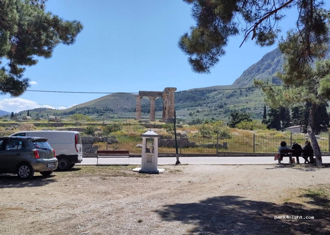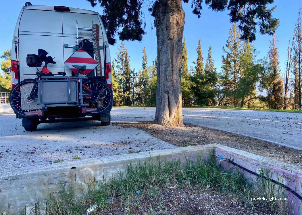 Super Platz mit fantastischer Aussicht direkt neben Korinth. Große Plätze mit gutem Untergrund unter Bäumen. Toller Spielplatz. Wir haben allerdings erstmal zwei große Tüten Müll vom Platz gesammelt bevor wir uns wohlgefühlt haben, Mülltonne ist vorhanden.