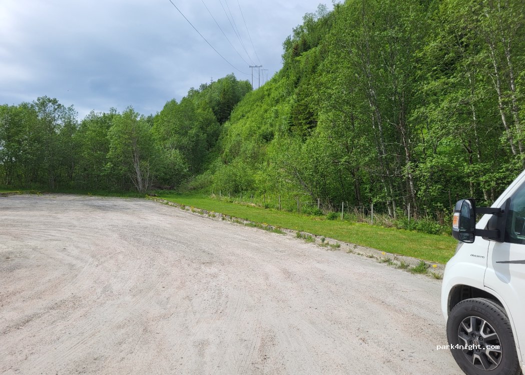 Small parking lot for one night, suitable for sleeping. From time to time cars drive by nearby.