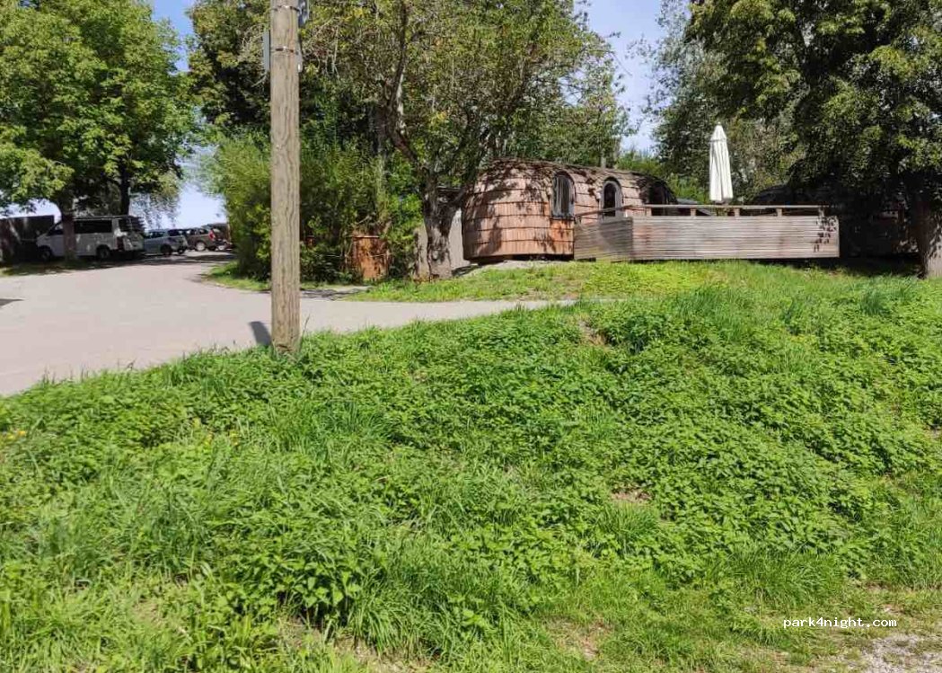 The campsite is closed from September 13th to April 30th! What a beautiful place. The campsite is located on a lake where you can swim. There are lots of guests upstairs, then comes the building with toilets and stuff, which looks fantastic and has lots of space. Then a field where you can park your motorhome wherever you want. Not very big but I think it can accommodate about 20 people. Then you are on the water. Also day visitors during the day, but super quiet in the evenings and at night. We thought it was great. We paid €31.50 including motorhome, 2 people, electricity, dog and tax.