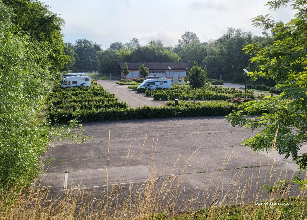 Parking sécurisant , propre et plat . Idéal pour une nuit . Pas loin du centre outlet pour le shopping . De belles promenades vers l’étang derrière . Proximité du Rhin un peu plus loin .Présence d’une route en hauteur mais pas dérangeante , ce n’est pas un lieu en pleine nature .