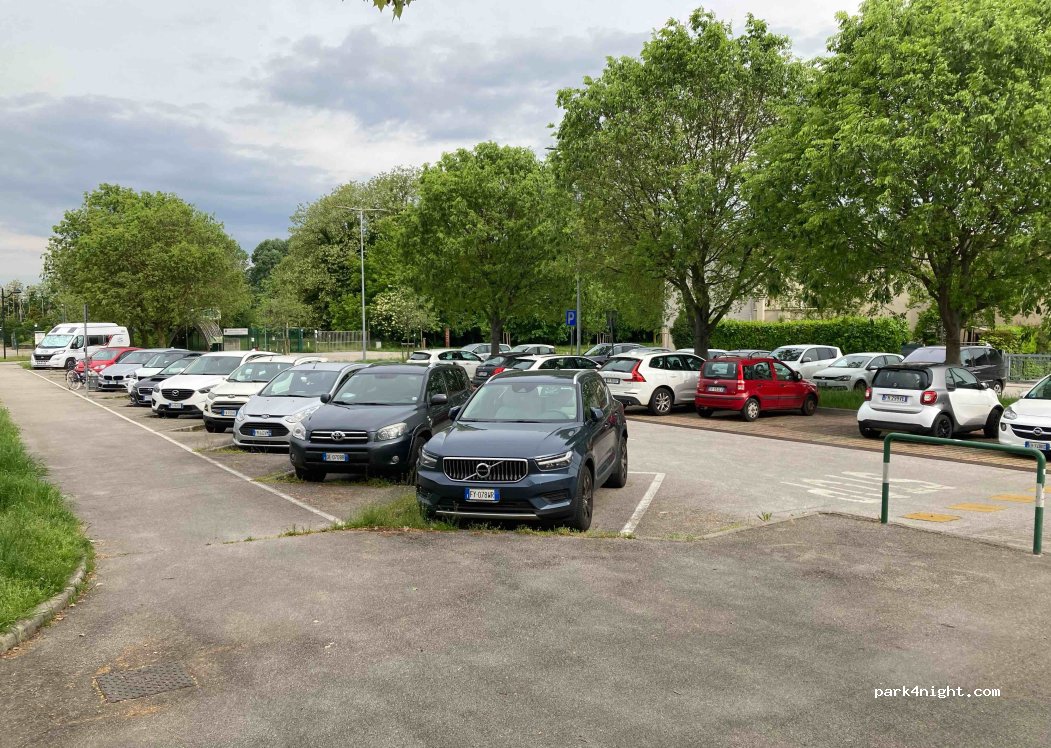 Free and well-lit car park next to the municipal sports stadium Campo Sportivo Comunale, nearby and ideal for taking the tram to the center of Padua and/or taking the train to Venice.