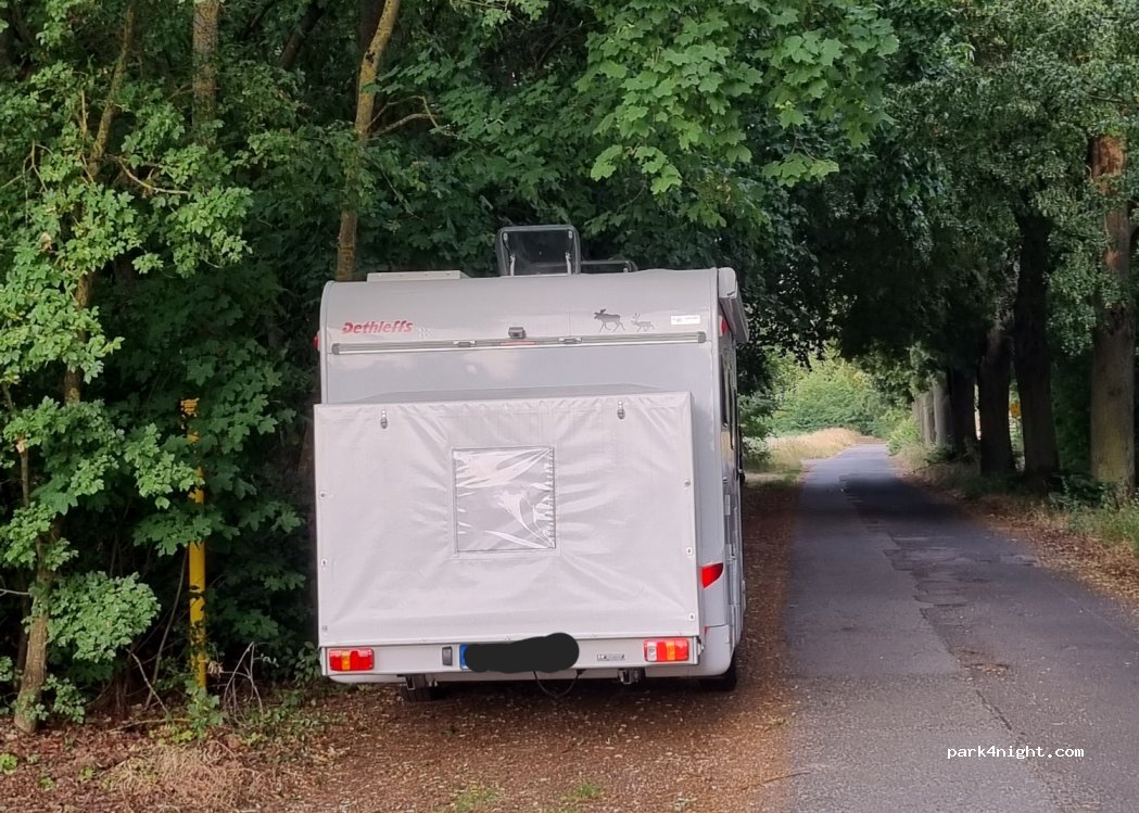 Hier ist es wirklich schön ruhig. Wenn man draußen steht kann man die nahe gelegene Autobahn ganz leise hören. Unter den Bäumen ist es auch schön schattig. Für eine Nacht ohne Luxus außen rum steht man hier gut.