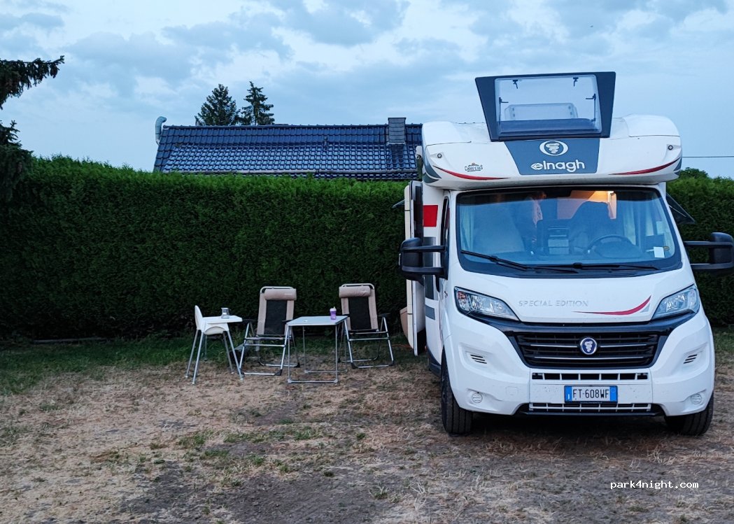 Topplek voor een nacht. Zelf de ketting weghalen bij binnenkomst. Betalen (20 euro) en toilet zijn in het restaurant via de trap omlaag. Stroom werkt niet overal, maar wel in de hoek bij het huisje. In de buurt: racecircuit, restaurants, kasteel. Geen supermarkt in het dorp. Leuk om auto’s te kijken!