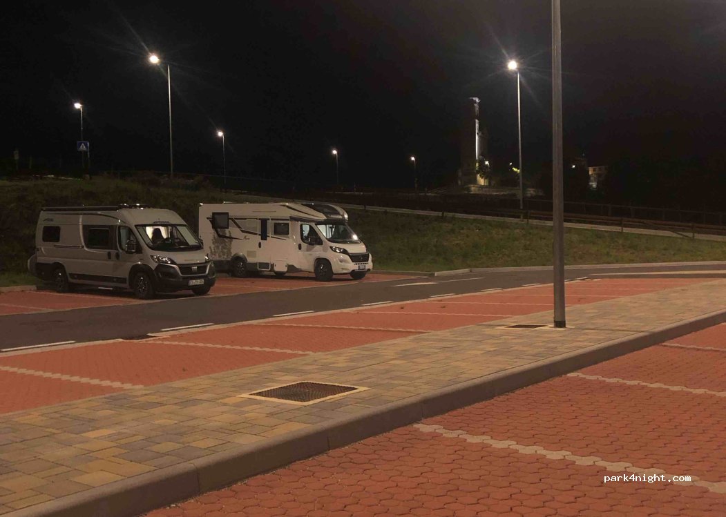 Spent a very quiet night here completely alone. Distant rush of the motorway, the odd church bell and a faint bark or two from the usual annoying local dog were the only minor disturbances. Even though campers are permitted here, the entrance ramp is ridiculously narrow so take care on your way down.