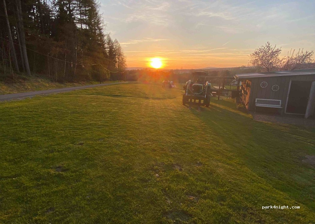 Absolut ruhige Lage am Wohnhaus. Unbedingt das Wasserrad im Wald besichtigen! Sehr nette Vermieterin. Strom und der hauseigene Pool(!) kann genutzt werden. Viele Unterlegkeile notwendig, da Stellplatz ziemlich geneigt. Anfahrt über die von Park4Night vorgeschlagene Route nur für Verwegene geeignet, da über teilweise gesperrte Waldwege. Besser nach eigenen Navis fahren.