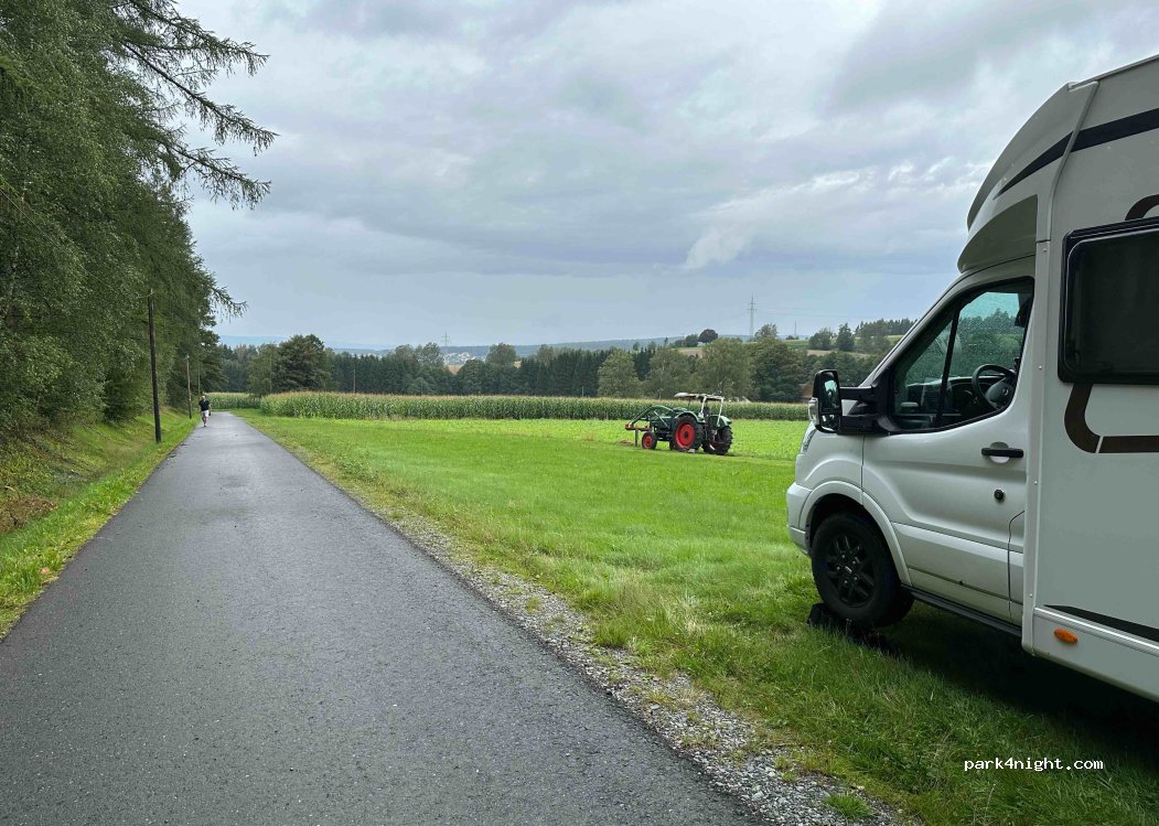 Quiet parking space on the edge of the Steinwald. A hike to the Upper Palatinate Tower is recommended. Ochsenkopf, Schneeberg and Luisenburg are about 30km away. Electricity and water available.
