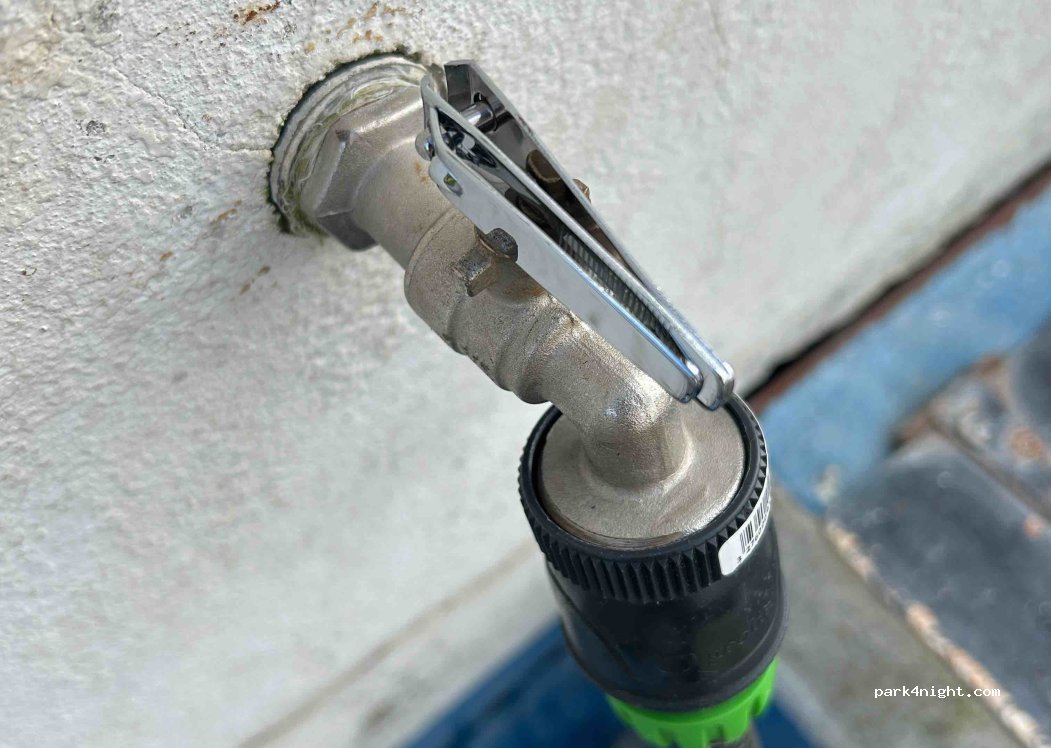 Looks ok place. We only came for water, as all near places have salty water. Yes, the lever is missing, but nail cutter did the job. See pictures.